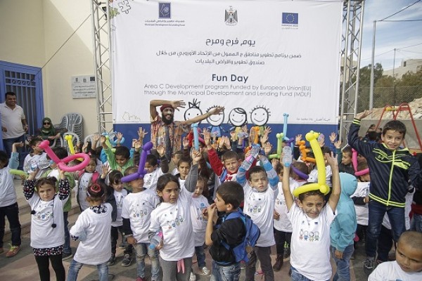 نظم صندوق تطوير وإقراض البلديات، يوم فرح ومرح للأطفال في خربة رأس الواد بمحافظة بيت لحم، وذلك لتسليط الضوء على مشروع تطوير المناطق المسماة(ج)، الممول بمرحلته الأولى من الاتحاد الأوروبي.