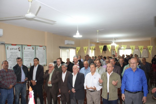 بعد ترحيب وتقديم من عضو قيادة منطقة عمار بن ياسر الأستاذ علي ابراهيم. تحدث امين سر اقليم حركة فتح في لبنان رفعت شناعة عن سيرة الشهيد ياسر عرفات والبدايات الأولى لتأسيس حركة فتح ومراحل حياته التي كانت متلازمة مع تاريخ حركة فتح وتاريخ الثورة الفلسطيني المعاصرة، مما جعله حلقة وصل بين كافة أطياف الثورة الفلسطينية، لأنه كان يؤمن بوحدة المصير وان القرار يتحدد فوق أرض المعركة.