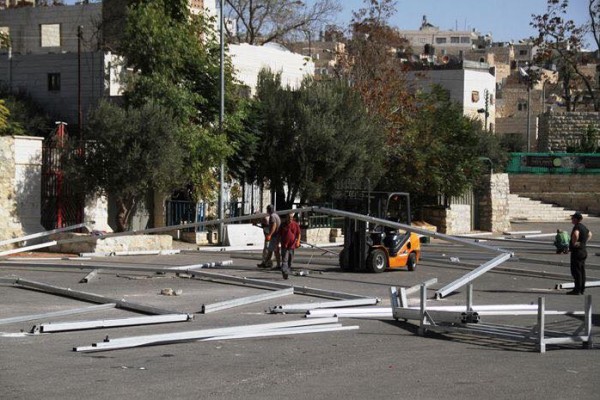 طالبت بلدية الخليل سلطات الاحتلال الإسرائيلي بالإزالة الفورية للبركسات والخيم التي أقيمت في ساحة المدرسة الابراهمية في مدينة الخليل؛ لما يشكل ذلك من اعتداء صارخ على حقوق وأملاك المواطنين، حيث أن البلدية تستأجر هذه المنطقة من أصحابها.