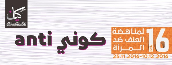 للعام الثاني على التواليّ، وتزامنًا مع اليوم العالمي لمناهضة العنف ضدّ المرأة، وبتعاون مع منتدى "جسور" النسائي القطريّ، تطلق جمعيّة كيان- تنظيم نسوي، يوم الجمعة الموافق 25 تشرين الثاني/نوفمبر، حملتها "16 يومًا لمناهضة العنف ضدّ المرأة"، والتي تستمرّ حتى الـ 10 من كانون الأول/ديسمبر.