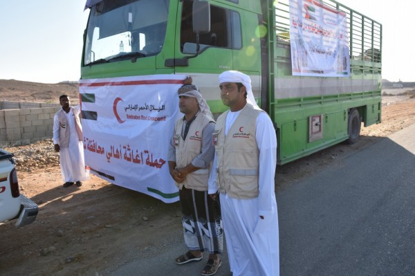 الهلال الأحمر الإماراتي يدشن مشروع توزيع المساعدات الغذائية بمحافظة شبوة