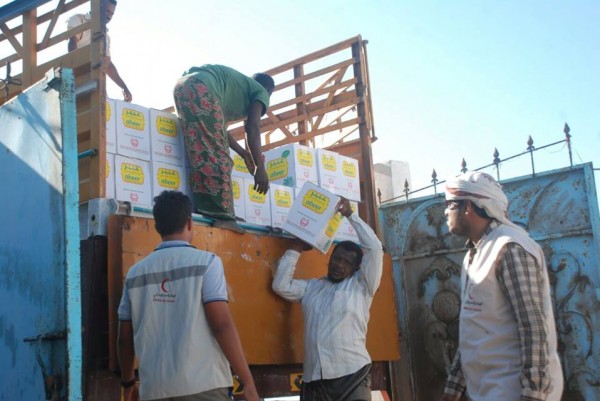 الهلال الأحمر الإماراتي يوزع مساعدات غذائية على اهالي مديرية رضوم بشبوة