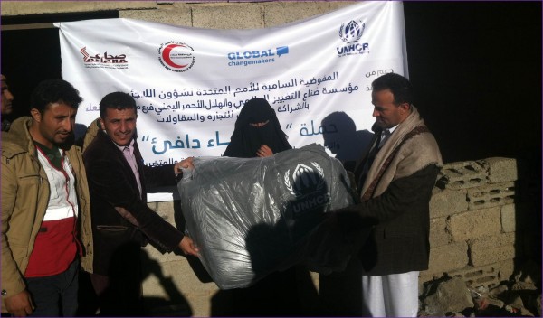وزع الهلال الأحمر اليمني فرع محافظة صنعاء بالشراكة مع مؤسسة صناع التغيير العالمي وضمن حملة شتاء دافى بدعم وتمويل من المفوضية السامية للأمم المتحدة لشئون اللاجئين 500 بطانية كمساعدات أنسانية عاجلة وطارئة لنازحي والمتضررين في مديرية همدان محافظة صنعاء مستهدفين مائة وثمانية عشر اسرة نازحة ومتضررة.