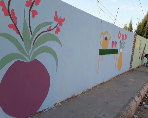 بدعم من جمعية أنيرا و بتمويل من اليونيسيف و بالتنسيق مع لجنة حطين الاجتماعية تم العمل على تجميل مدخل مخيم عين الحلوة الجنوبي من دهان و رسم على الجدران.