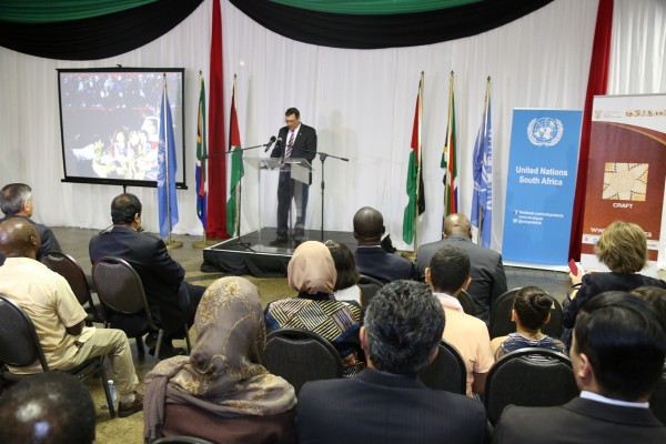 من جانبها القت ممثلة الامم المتحدة السيدة زينات عبدول كلمة الامين العام للامم المتحدة بان كيمون بهذه المناسبة، كما القت مدير عام العلاقات الدولية في وزارة الثقافة والفنون السيدة لوريز جراهام كلمة باسم حكومة جنوب افريقيا اكدت فيها على الموقف الجنوب افريقي الرسمي الداعم لنضال شعبنا العادل وحقنا بالحرية والاستقلال ورحبت بالتعاون مع سفارة فلسطين لتعزيز التبادل الثقافي والفني بين البلدين والشعبين