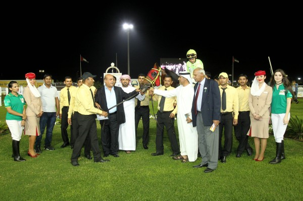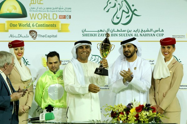وعقب ختام السباق قام عدنان سلطان مدير نادي ابوظبي للفروسية وخالد النابودة بتتويج الفائز
