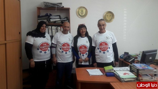 ورافق آمنة حصادية، في جولتها هذه وفد مكون من: محمود أبو ذيب- العامل الاجتماعي في مكتب الخدمات الاجتماعية الفريديس، وميسون أسدي- مندوبة عن مركز جمعية أكيم، وسمر برّية وذكرى حصادية- متطوعات في أكيم، وكمال ابو داهش- نائب رئيس المجلس المحلي في القرية. حيث تم توزيع المناشير والملصقات على الأهالي والشرح المسهب عن أهمية هذا اليوم.