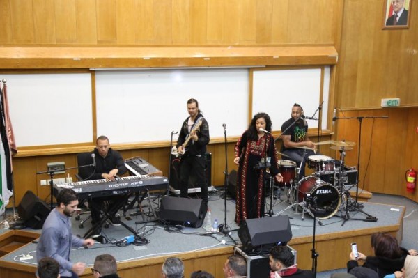أقام مكتب العلاقات الدولية في جامعة النجاح الوطنية، الثلاثاء، بالتعاون مع القنصلية الأمريكية العامة في القدس حفلاً موسيقياً خاصاً، قدمته فنانة الهيب هوب الأمريكية والناشطة الاجتماعية عائشة فوكوشيما وفرقتها، في مدرجات ظافر المصري في الحرم الجامعي القديم.