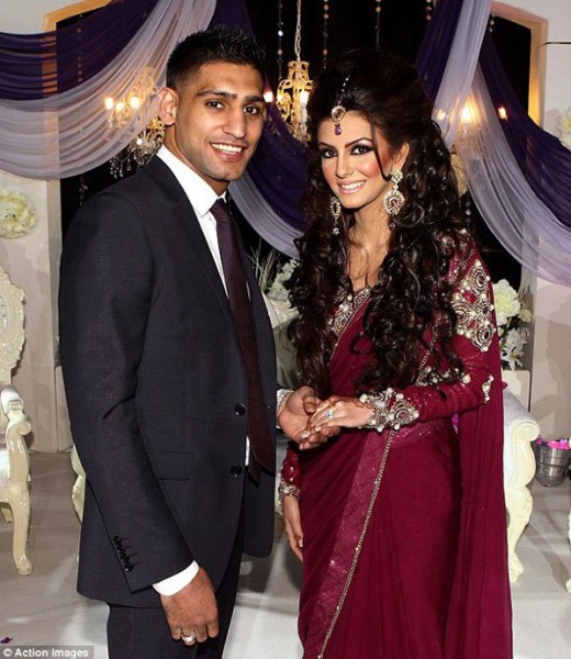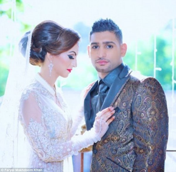 يحاول الملاكم البريطاني أمير خان حلَّ الخلاف الذي نشب بين زوجته عارضة الأزياء ووالديه المحافظين، مهدداً بأن الطرفين سيخسرانه ما لم يتفقا.