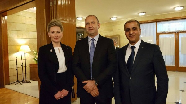 في اطار سعي سفارة دولة فلسطين لدى بلغاريا لتعزيز العلاقات مع جمهورية بلغاريا التقى د. احمد المذبوح سفير دولة فلسطين لدى بلغاريا مع فخامة الرئيس البلغاري المنتخب جديدا السيد رومِن راديف، وابلغه تحيات سيادة الرئيس ابو مازن وتمنياته لفخامته بالصحة والنجاح، وللشعب البلغاري الصديق التقدم والازدهار وان يعم السلام بلادنا والعالم اجمع.