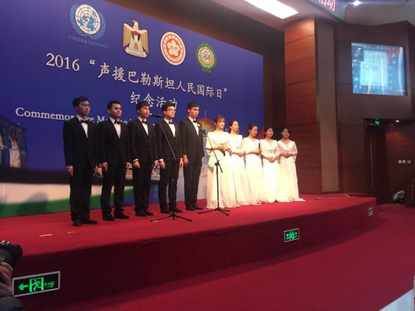 وذلك بحضور نائب وزير الخارجية الصيني السيد زان منج ومساعد وزير الخارجية لشؤون أسيا وإفريقيا د.مازن شامية وسفير دولة فلسطين لدى جمهورية الصين الشعبية فريز مهداوي، سفراء وممثلي الدول العربية والأجنبية المعتمدين لدى جمهورية الصين الشعبية، وطلاب جامعة اللغات والثقافة.