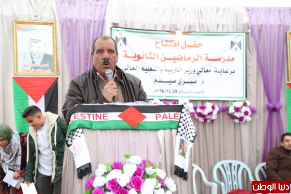 افتتحت وزارة التربية والتعليم العالي اليوم السبت، مدرسة الرماضين الثانوية، جنوبي مدينة الخليل بالضفة الغربية، بحضور وزير التربية والتعليم صبري صيدم.
