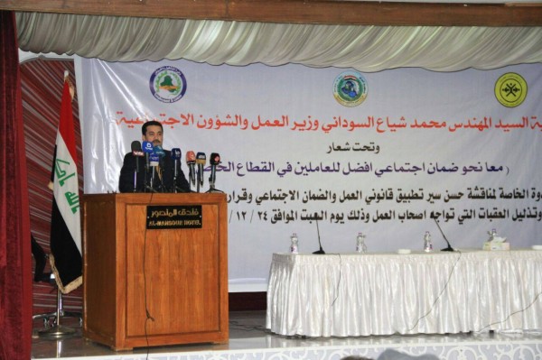 اكد وزير العمل والشؤون الاجتماعية المهندس محمد شياع السوداني ضرورة تنظيم سوق العمل العراقي ومعالجة التحديات الرئيسة في القطاع غير المنظم والتصدي لها بالطرق الوطنية والمعيارية التي نصت عليها التوصيات الدولية.