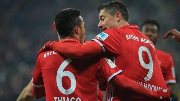 وسجل ثلاثية بايرن ميونيخ، تياجو ألكانتارا وتشابي ألونسو وروبرت ليفاندوفسكي من ركلة جزاء في (د.17 و25 و45) على التوالي.