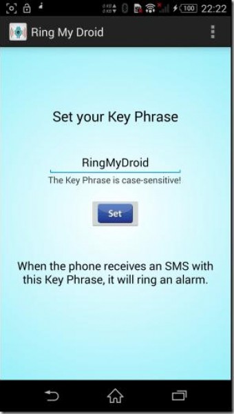 2- الطريقة الثانية تتطلب شبكة الهاتف من خلال تحميل تطبيق "Ring My Droid"، يمكن تعيين SMS وحفظ الإعدادات، ومن خلال إرسال هذه الرسالة لهاتفك من هاتف آخر، فإن التطبيق يكشف عن الرسالة ويرن الهاتف حتى عندما يكون على الوضع الصامت.