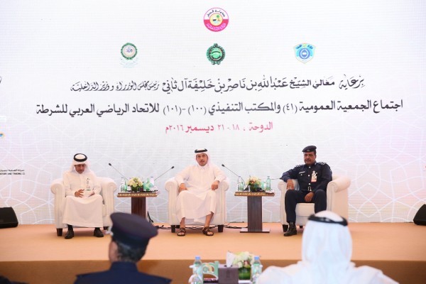 حيث قام الشيخ عبدالله بن ناصر بن خليفة آل ثاني رئيس مجلس الوزراء وزير الداخلية القطري بافتتاح أعمال الجمعية العمومية بفندق شرق الدوحة بحضور الدكتور محمد بن علي كومان الأمين العام لمجلس وزراء الداخلية العرب و العميد خالد بن حمد العطية رئيس الاتحاد الرياضي العربي للشرطة والأمين العام للاتحاد اللواء احمد رجائي ووفود 18 دولة الأعضاء الدائمين للاتحاد الرياضي العربي للشرطة .