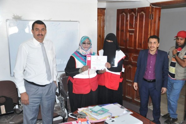 اختتم الهلال الاحمر اليمني فرع محافظة صنعاء اليوم الدورة التدريبية في مجال التثقيف الصحي مجال التثقيف الصحي عن الكوليرا والتغذية السليمة والرعاية الصحية للولادة الآمنة بدعم وتمويل من الإتحاد الدولي لجمعيات الهلال الأحمر والصليب الأحمر.