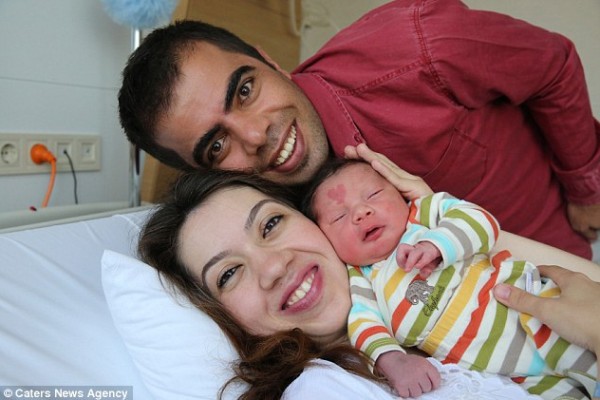 وقد تفاجأ والدا الطفل مورات أنجين (30 عاماً) وسيدا (28 عاماً) بالعلامة الخلقية التي تمتّع بها طفلهما سينار والتي بدت على شكل قلب.
