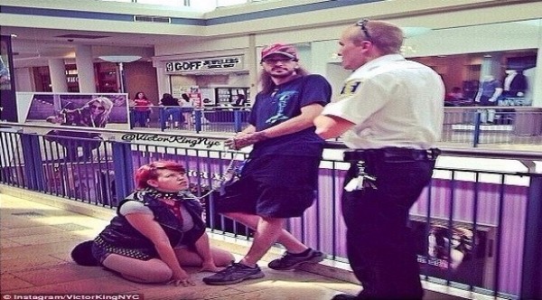 أمريكي يقدم طوق كلب لخطيبته عوضاً عن الخاتم .. ويجرها خلفه!