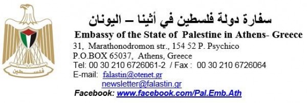 وأشار عضو المكتب السياسي للحزب أيضا إلى استمرار عمل الحزب من اجل قيام الحكومة اليونانية لتنفيذ توصية البرلمان اليوناني بالعام الماضي المتعلقة بالاعتراف بدولة فلسطين.