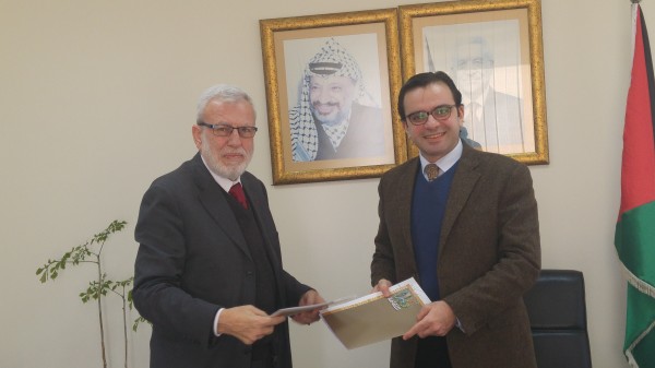 وقع وزير الثقافة د. إيهاب بسيسو بصفته رئيس المجلس الإداري للصندوق الثقافي الفلسطيني، ظهر اليوم، في مقر الوزارة بمدينة البيرة، اتفاقية مع د. أنور أبو عيشة ممثلاً لمؤسسة التعاون الثقافي الخليل فرنسا، ومقرها في مدينة الخليل.