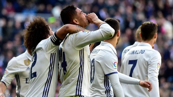 ولم يواجه ريال أي صعوبة في تحقيق الفوز، كما كانت حاله الأربعاء ضد إشبيلية، وافتتح النادي الملكي التسجيل منذ الدقيقة 12 عبر إيسكو الذي توغل في الجهة اليمنى لمنطقة الجزاء بعد تمريرة من الفرنسي كريم بنزيمة، العائد إلى التشكيلة بعدما غاب عن مباراة الكأس في منتصف الأسبوع، قبل أن يسدد الكرة أرضية في شباك المكسيكي غييرمو اوتشوا.