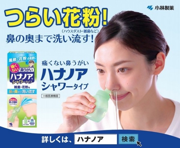 ظهر في الإعلان فتاةٌ شابةٌ تستخدم جهازًا غريبًا اسمه "Hana Noa"؛ لدفع الماء داخل فتحة أنفها ليخرج من الجهة أخرى نظيفا على غير المعتاد.