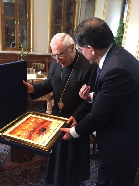 كما قدم السفير عبد الهادي في نهاية الزيارة لوحة من كنيسة المهد لسيادة المطران جوزيف عبسي.