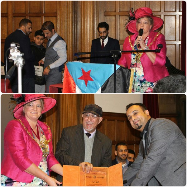 حفل التكريم أقيم في مبنى السلطات المحلية لمدينة شفيلد البريطانية " التاون هول " الذي يعتبر مقر الحكومة المحلية في المدينة و حضر هذا الحفل عمدة مدينة شفيلد البريطانية ومجموعة من أعضاء مجلس العموم البريطاني ومجموعة كبيرة من المسؤولين البريطانيين بالإضافة إلى حشد كبير من أبناء الجالية الجنوبية والجاليات العربية والإسلامية.