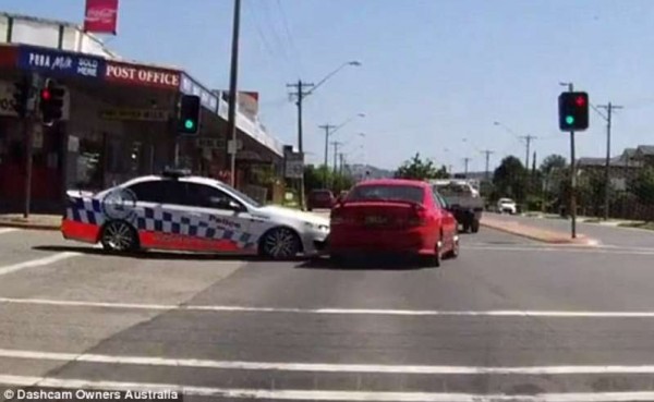 رغم أن الإشارة كانت خضراء، إلا إن شرطيا أستراليا استخدم أغرب طريقة لإجبار سيارة على التوقف، حيث قام بالاصطدام بها، وسط ذهول كل من شاهد الواقعة، وجدل كل من شاهد الشريط.