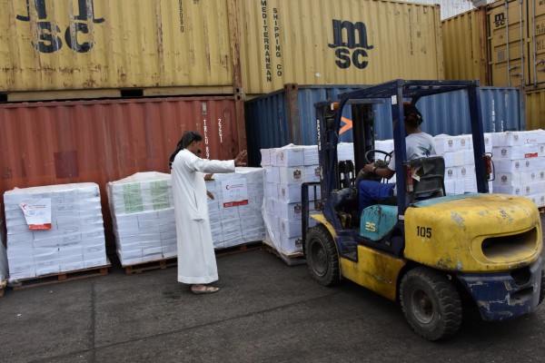 أفرغت اليوم ، سفينة مساعدات إغاثية قادمة من دولة الامارات العربية المتحدة ، حمولتها في ميناء المكلا والتي تعد الثانية في نفس الشهر للعام الجديد ، حيث تنوعت حمولتها ما بين أجهزة ومعدات طبية ومواد غذائية وتمور و مستلزمات صحية.