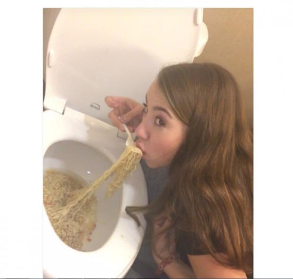 أشعلت فتاة مواقع التواصل الاجتماعي بعد نشر صورة لها تتناول طعام الرامين أو المكرونة من المرحاض.