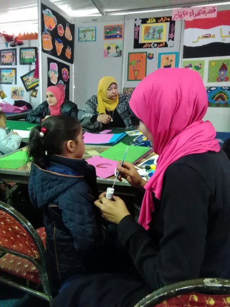 "جدارية ورقيه ومكياج وجه "بمخيم الطفل بمعرض الكتاب