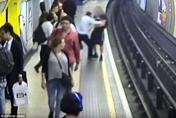 لقطات مروعة لرجل يدفع آخر على شريط قطار المترو