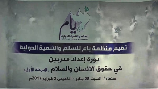 اقامت منظمة يام للسلام والتنمية الدولية بالعاصمة صنعاء امس السبت دورة اعداد المدربين في مجال حقوق الانسان والسلام.