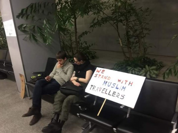 كتب الناشط السياسي الفلسطيني عطية عطية على صفحته على الفيس بوك والمقيم في مدينة سان فرانسيسكو والذي يشارك في المظاهرات المناهضة لسياسة الرئيس الأمريكي ترامب إزاء المهاجرين أن مطار سان فرانسيسكو الدولي لم يكن مطارًا اعتياديًا الْيَوْمَ وأمس بل كان معقلًا للدفاع عن العدالة وقلعة تحدي لقوانين ترامب الجائرة.