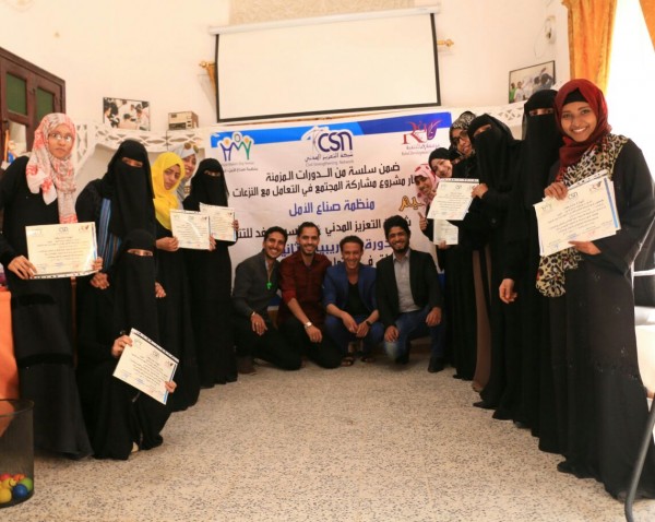اختتمت منظمة صناع الامل_اليمن وبالتعاون مع شبكة التعزيز المدنى ومؤسسة رِفد للتنمية الدورة التدريبية الثانية بعنوان (دور المرأة في التعامل مع النزاعات) والتى استمرت لمدة ثلاثه ايام على التوالى فى مقر شبكة التعزيز المدني، لعدد 15 متدرب ومتدربة من الناشطات والناشطين فى العمل المجتمعي فى أمانة العاصمة صنعاء.