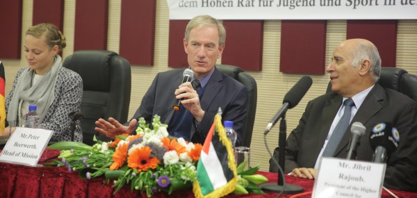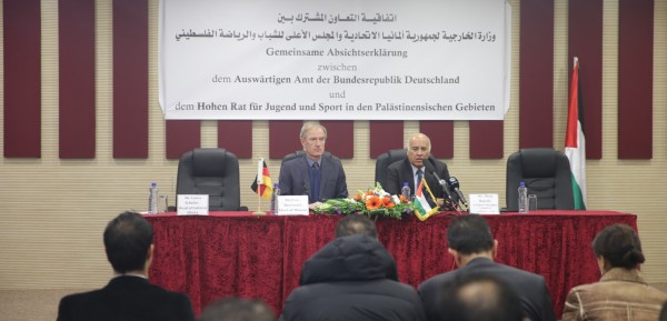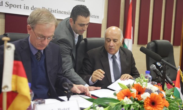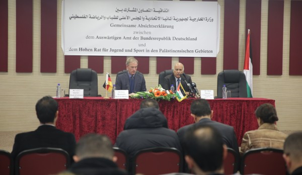 قام اللواء جبريل الرجوب، رئيس المجلس الأعلى للشباب والرياضة، رئيس اللجنة الأولمبية، وبيتر بيرفيرث رئيس مكتب ممثلية المانيا الاتحادية لدى فلسطين، بتوقيع أول اتفاقية تعاون ثنائي مشترك بين فلسطين والمانيا في المجال الرياضي.