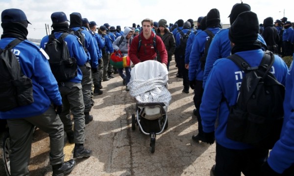 وخلال عملية الإخلاء، أظهر الممثل الثاني في المسرحية، عناصر الأمن، حنانًا ورأفة تجاه المستوطنين خلال إخراجهم من المنازل التي بنوها على أرض فلسطينية بملكية خاصة قاموا بسرقتها والاستيطان عليها، وأظهروا 'حزمًا وقوة' في التعامل مع المخلين بالنظام ومن استخدم العنف فقط، لكنهم لم يستخدموا أيًا من وسائل القمع مثل الغاز المدمع والرصاص المطاطي التي يبدو أنها معدة للعرب فقط، ودخلوا بأزياء تناسب المسرحية، بلا خوذات واقية أو أسلحة نارية وقنابل صوت وغاز أو خيول تدب الرعب في القلوب.