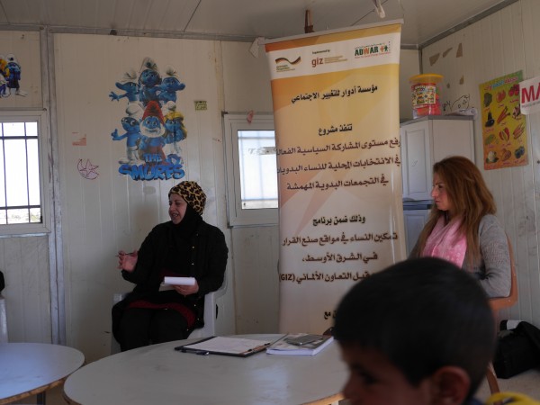 واصلت مؤسسة أدوار للتغيير الاجتماعي، الأحد، تنفيذ المرحلة الثالثة من مشروع "رفع مستوى المشاركة السياسية الفعالة في الانتخابات المحلية للنساء البدويات في التجمعات البدوية المهمشة"، وذلك بالشراكة مع التعاون الألماني GIZ وبتمويل من الحكومة الألمانية.