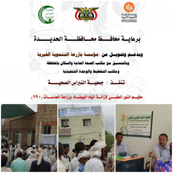 هذا وتهيب مؤسسة بازرعة وهي من المؤسسات العاملة في تنمية المجتمع اليمني من خلال الاهتمام بالجانب الصحي، وجمعية النبراس الصحية وهي من اوائل الجمعيات الأهلية المتخصصة في مجال مكافحة العمى ورعاية البصر في اليمن، كما انها من الجمعيات المشهود لها بالكفاءة والتميز في مجال مكافحة العمى، تهيب بالمواطنين الفقراء والمحتاجين الاستفادة من هذه الخدمات المقدمة.