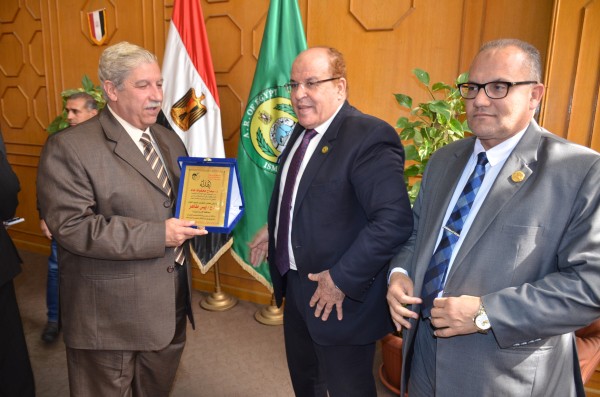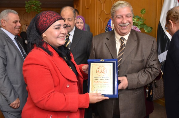 وفى ختام اللقاء تم اهداء درع الجمعية للمحافظ وتكريم رئيسة مجلس ادارة الجمعية