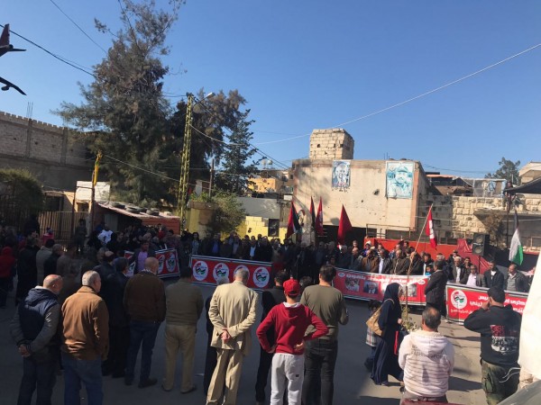 وشارك في الاعتصام ممثلون عن القوى والفصائل الوطنية والإسلامية،إلى جانب قيادة وكوادر واعضاء وشبيبة منظمة حزب الشعب في صيدا،حيث تخلل الإعتصام عدد من الكلمات،فكانت الكلمة الأولى :-