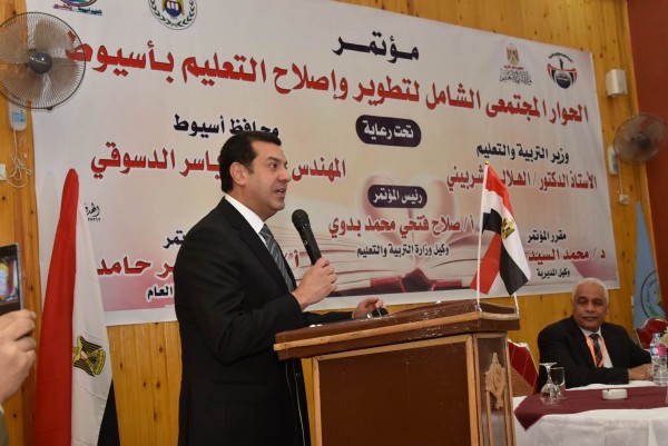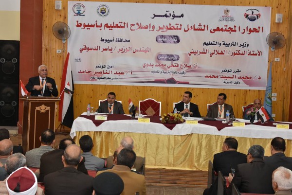 جاء ذلك خلال فعاليات الحوار المجتمعي الشامل لتطوير واصلاح التعليم بمحافظة أسيوط برعاية الدكتور الهلالي الشربيني وزير التربية والتعليم والذي اقيم بمدرسة أسيوط الثانوية الفندقية بمنطقة الاربعين بحضور صلاح فتحي وكيل وزارة التربية والتعليم والدكتور محمد السيد وكيل المديرية والدكتور عادل رسمي عميد كلية التربية بجامعة أسيوط والدكتورة اليزابيث شاكر والدكتور البدري ابو ضف عضوي مجلس النواب ولفيف من قيادات مديرية التربية والتعليم بالمحافظة.