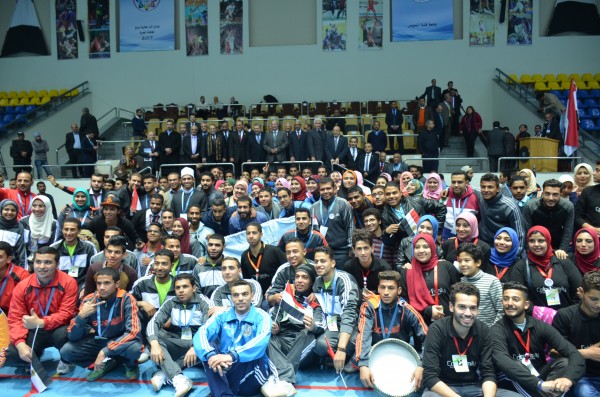 حضر الاحتفال حشد كبير من طلاب الجامعات والأساتذة وأعضاء هيئة التدريس والقيادات التنفيذية وأعضاء مجلس الجامعة و الدكتور أشرف الشيحي وزير التعليم العالي واللواء ياسين طاهر محافظ اﻹسماعيلية، واللواء محمود الديب مساعد وزير الداخلية لمنطقة القناة، واللواء عصام سعد مدير أمن اﻹسماعيلية، والأستاذ الدكتور ممدوح غراب رئيس جامعة قناة السويس، والدكتور صبحي حسانين نائب رئيس الإتحاد الرياضي للجامعات المصرية، والدكتور طارق راشد رحمي نائب رئيس الجامعةلشئون التعليم والطلاب وبحضور عدد من رؤوساء الجامعات المصرية وعميدو ووكلاء كليات جامعة قناة السويس وأعضاء هيئة التدريس، وعدد من القيادات السياسية بمحافظة اﻹسماعيلية وعدد من السادة اﻹداريين بالجامعة
