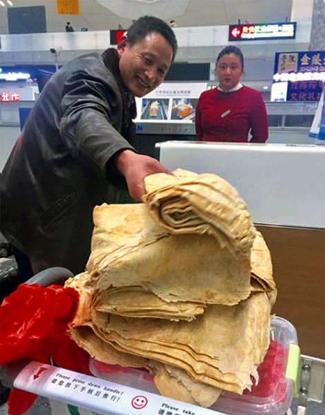 أن تحمل معك "حلة محشي" أو "ملوخية" عبر المطارات، أمر يثير السخرية ، وهو ماحدث مع عامل صيني يحمل 14 كجم من فطائر البان كيك .