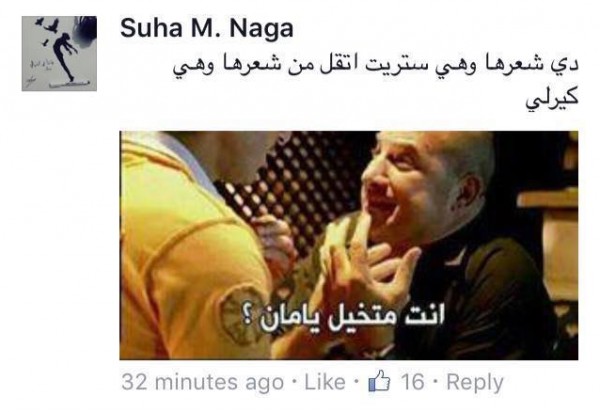 وبمجرد أن نشرت نيلاي الصور انهالت عليها التعليقات الساخرة من جمال شعرها المفرط، وجاء في التعليقات: أنا عندي شعراية واحدة حضرتك وبفرقها من النص.
