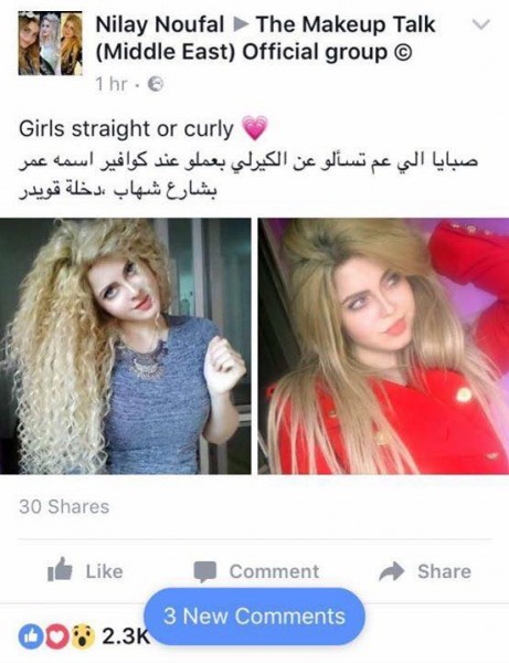 وهذا ماحدث مع ملكة جمال سوريا نيلاي نوفل بعدما نشرت صورتها على "جروب" نسائي مختص بالمكياج .