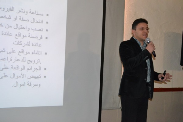 تلاها تقديم محاضرة عن الأنترنت الآمن قدمها الملازم أول المهندس أيمن تاج الدين يعاونه الرقيب أول رشاد خير، حيث جرى الحديث عن المشاكل والأفخاخ التي يمكن أن نقع بها على الشبكة العنكبوتية وكيفية حماية أنفسنا منها.