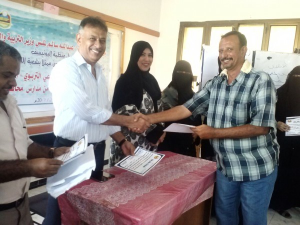 وجاء الإختتام بحضور رئيسة شعبة التدريب والتأهيل بمكتب التربية بعدن، مايسة عشيش. ومدير ادارة التدريب والتاهل، وضاح مهيوب، ومدير التربية والتعليم بمديرية المعلا عبدالرحيم جاوي.